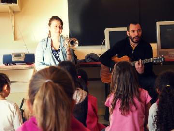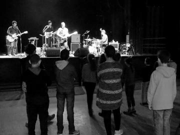 Régisseur générale et technique, médiatrice culturelle, community manager, cuisinier, chargée de communication, comptable, administratrice, artistes musicien, chargé d'accompagnement des artistes... les élèves de CM2 se sont intéressés de plus près aux métiers du spectacle vivant et sont venus rencontrés quelques membres de l'équipe du Krakatoa lors d'une séance de répétition du groupe de la Pépinière, Au pays des matins calmes. Les élèves ont visité la salle, du hall aux loges en passant par le catering, les musiciens leur ont joué deux morceaux et ont répondu à leurs questions.