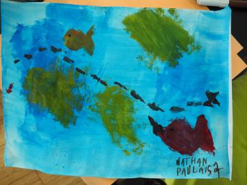 - Un dessin à plusieurs mains : sur un format raisin, se partager l’espace, compléter les dessins de chacun… coller les dessins sur un grand paysage