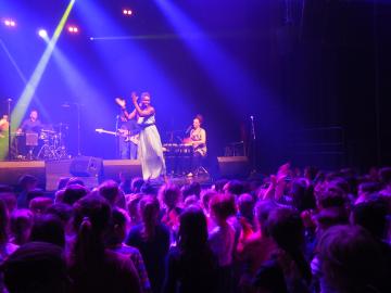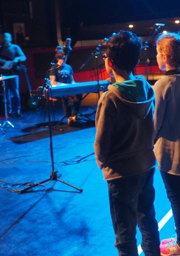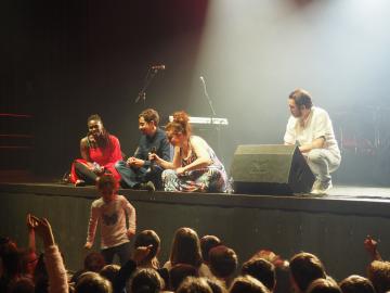 Les enfants, enthousiastes, chantaient même avec la musicienne ! Une danseuse, musicienne et choriste talentueuse accompagnait les musiciens, elle invitait les enfants à s’exprimer avec leurs corps, en tapant dans les mains en sautant ou en tournoyant, l’expérience fut totale pour les petits (et grands !) spectateurs. Le concert terminé, les enfants ont échangé avec les artistes lors d'un moment partagé en bord de scène. C'est l'occasion de se familiariser avec les instruments utilisés comme les congas, les petites percussions, la basse ou le piano... d'en apprendre plus sur les langues chantées ou les pays visités, ou simplement d'en apprendre plus sur les métier d'artiste, technicien etc.