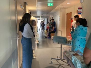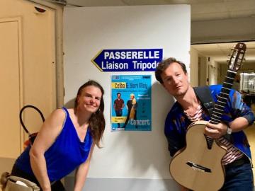 En mai, nous avons proposé une déambulation musicale au pôle maternité du CHU, avec Ceiba & Yori Moy. En suite de couches, les artistes ont rencontré les familles, soignantes et nouveaux nés âgés de 2 jours, ils leur ont offert les toutes premières notes de leurs vies. En grossesse pathologique, l'accueil des soignantes, des patientes et des familles était beau, doux et chaleureux, c'était un beau pas de côté partagé.
