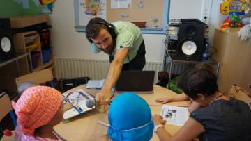 En secteur protégé, les enfants aussi participent à la composition de l'album grâce à des instruments numériques interactifs. Rien n'arrête Guillaume Martial ! De l'écriture à l'enregistrement, trois jours pour s'évader