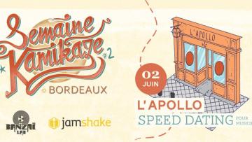 Amis musiciens Bordelais, rencontrez-vous le 2 Juin à L’Apollo bar de 19h à 21h pour la deuxième édition du Speed Dating musical, organisé par Banzai Lab dans le cadre de leur Semaine Kamikaze #2, en partenariat avec la fédération Feppia, Blitzr et JamShake.