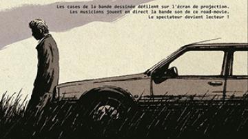 C’est un spectacle hybride et hors normes… Un montage vidéo reprend l’intégralité des images et des textes du livre projetés sur un écran géant. Les cases de la bande dessinée défilent, empruntant au cinéma son vocabulaire : zooms, travellings, fondus enchaînés, etc… Sur la scène, à côté de l’écran dans la pénombre, les musiciens jouent en direct au rythme du récit. Pendant 60 minutes, le spectateur devient lecteur ! Emporté par une émotion à la fois visuelle, musicale et littéraire.
